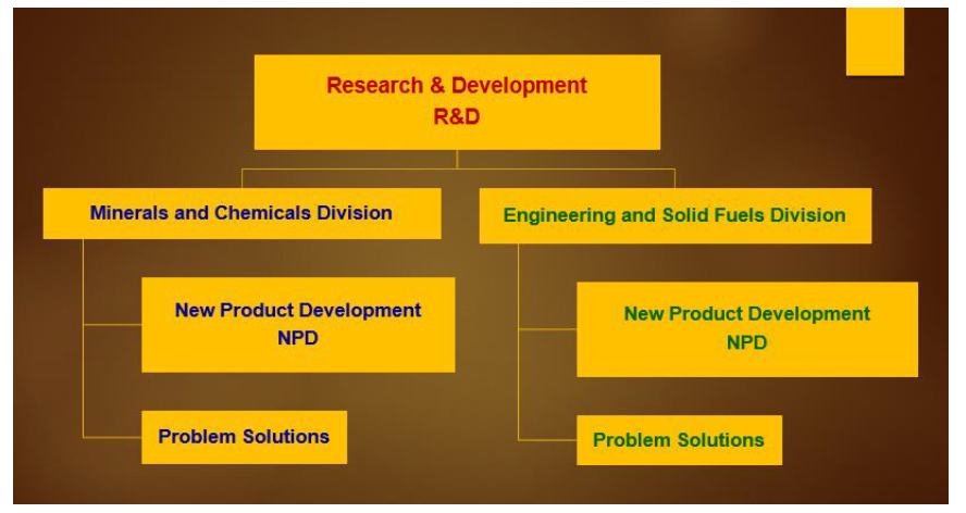 - R&D in Dawn Calorific consists of of two segments and they are Minerals and Chemicals Division and Engineering and Solid fuels division.